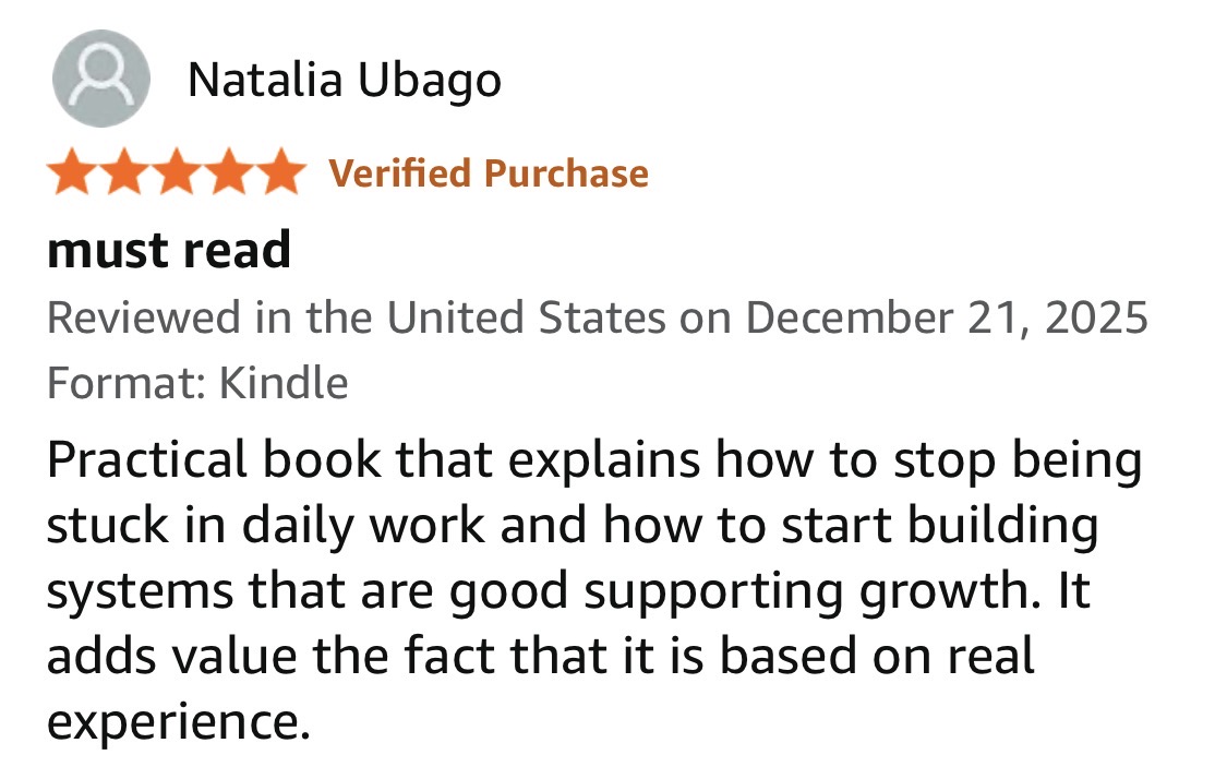 That depends on your ability to implement as you read. Many readers see quick wins in the first 7 to 14 days. You will start removing bottlenecks, reclaim hours, and gain clarity fast.